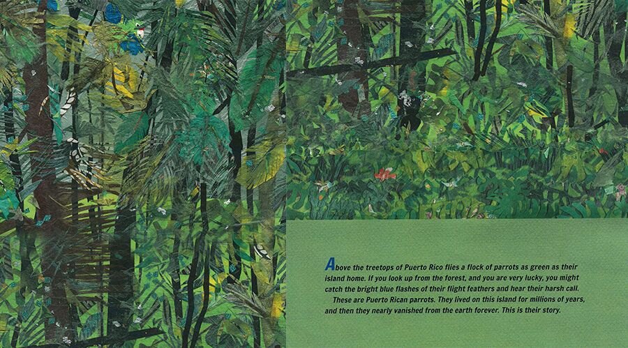 With striking collage illustrations, a unique format, and engaging storytelling, Parrots Over Puerto Rico invites readers to witness the amazing recovery efforts that have enabled Puerto Rican parrots to fly over their island once again.