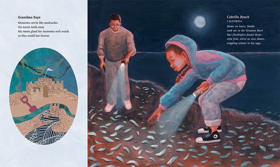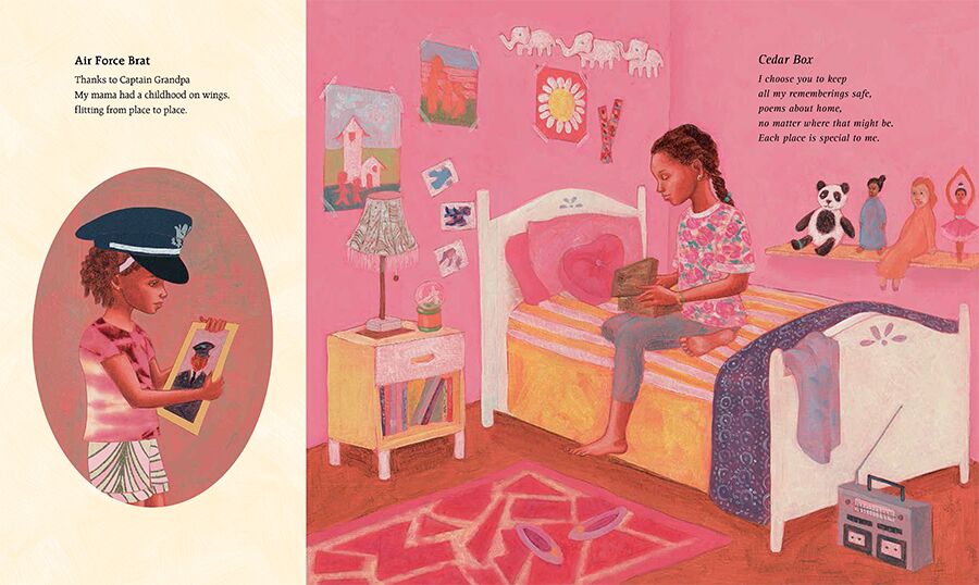 During a visit to her grandma’s house, a young girl discovers a box of poems in the attic, poems written by her mother when she was growing up. Her mother’s family often moved around the United States and the world because her mother’s father was in the Air Force. Over the years, her mother used poetry to record everything she saw and did in the many places their family lived.