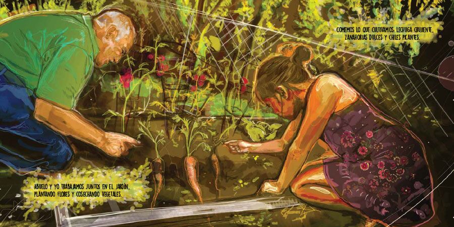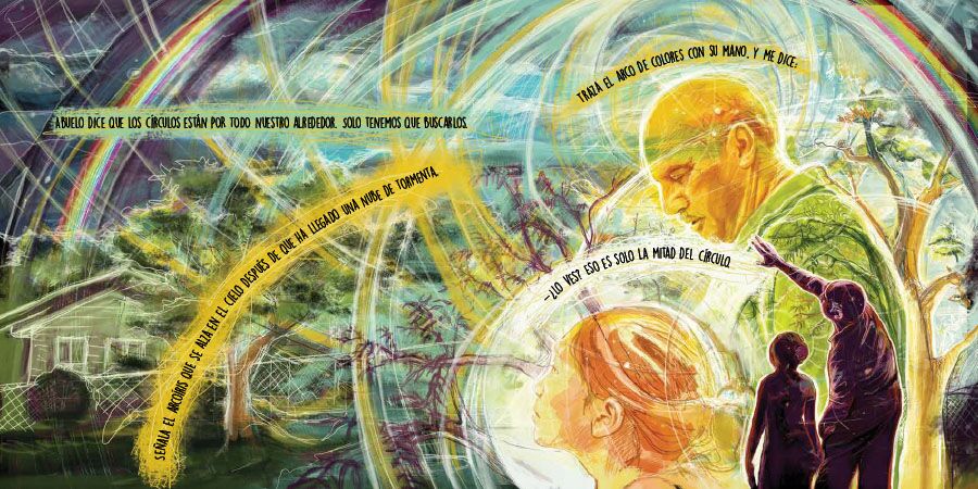 Abuelo y nieta meditan sobre jardines y semillas, sobre círculos visibles e invisibles, mientras participan y crean tradiciones familiares en esta hermosa exploración de los ciclos de la vida y naturaleza. La versión en inglés ganó el premio Pura Belpre Honor por Illustración en el 2018. Busque el libro complementario, Donde las maravillas crecen.