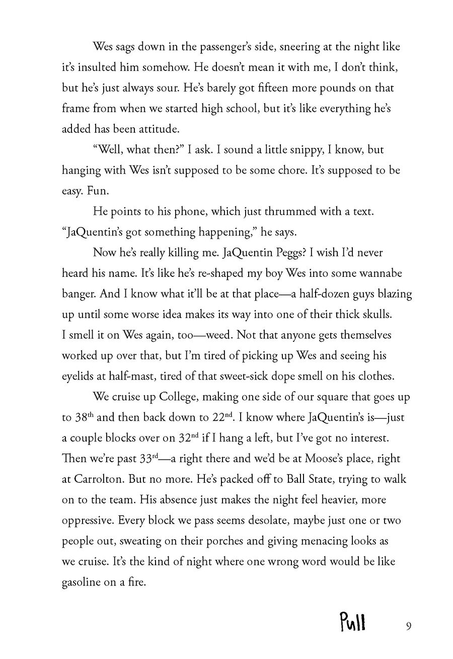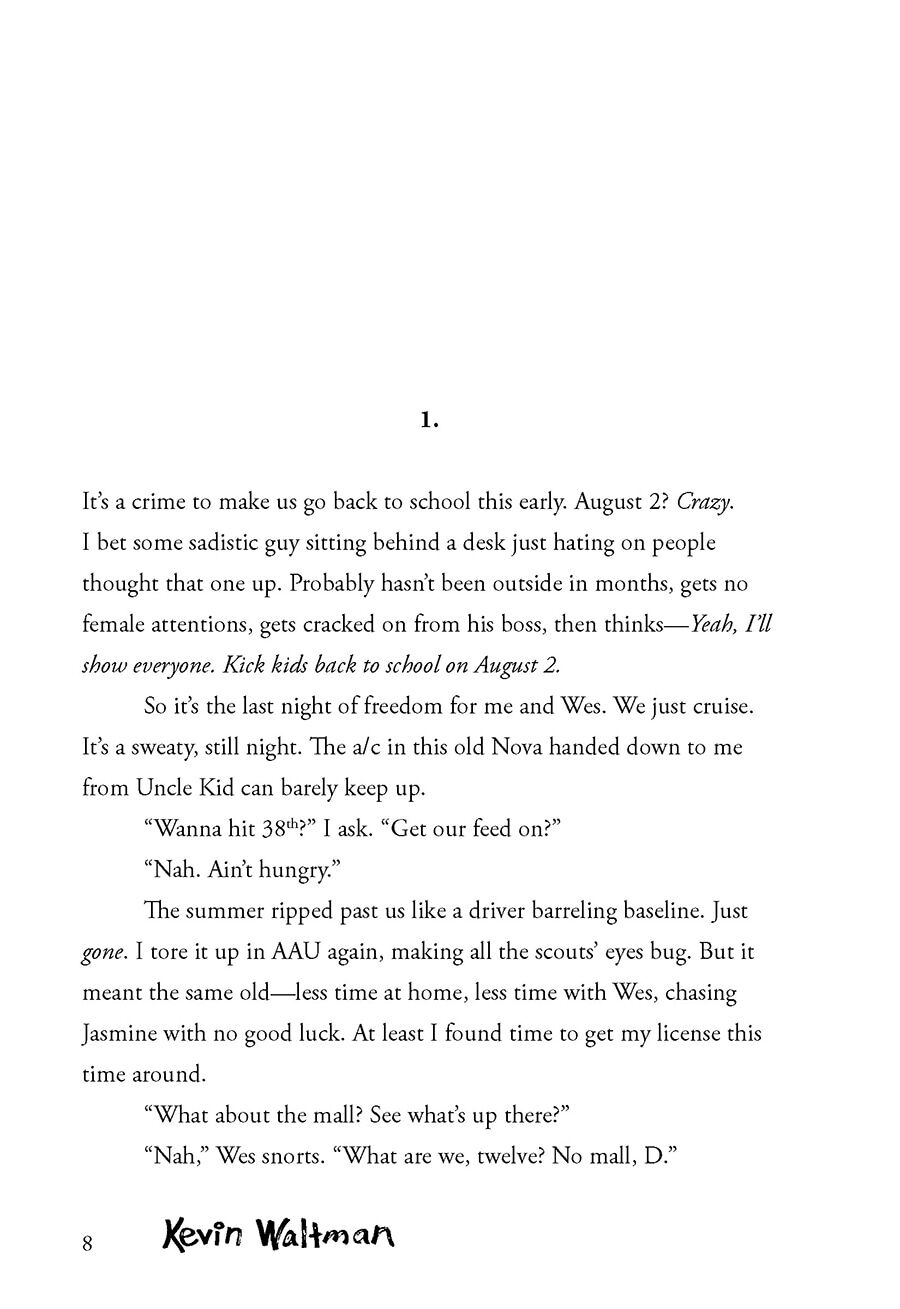 Junior year. Derrick Bowen has put in two good years getting ready for this season. He put in the work and earned his coach’s trust and his role as the starting point guard for Marion East. Marion has never won the Indiana state championship, but this year the team is Derrick’s. And Derrick is good. Opponents worry when Derrick–D-Bow when he’s pounding the rock–steps onto the court. Major colleges work feverishly to recruit him. Derrick is ready to run teams off the court.