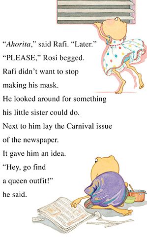 It’s time for Carnival! Puerto Rico’s joyous holiday is full of sights and sounds to explore. Rosi is determined to show Rafi the best way to enjoy the parade, while Rafi has a plan to make his sister queen for a day. But when Rafi scares Rosi with his terrible vejigante mask, Rosi decides it’s time to teach her brother a lesson. This little sister has a few tricks up her sleeve too!