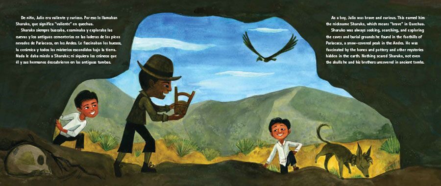 Growing up in the late 1800s, Julio Tello, an Indigenous boy, spent time exploring the caves and burial grounds in the foothills of the Peruvian Andes. Nothing scared Julio, not even the ancient human skulls he found. His bravery earned him the boyhood nickname Sharuko, which means “brave” in Quechua, the language of the Native people of Peru.
