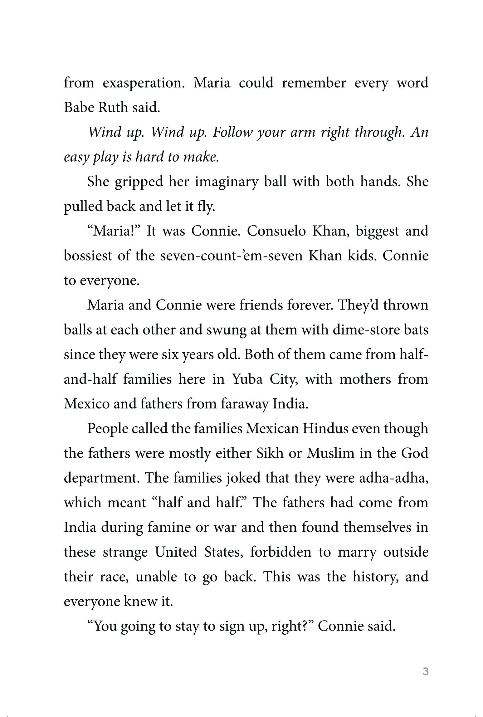 Nine-year-old Maria Singh longs to play softball in the first-ever girls’ team forming in Yuba City, California. It’s the spring of 1945, and World War II is dragging on. Miss Newman, Maria’s teacher, is inspired by Babe Ruth and the All-American Girls’ League to start a girls’ softball team at their school.