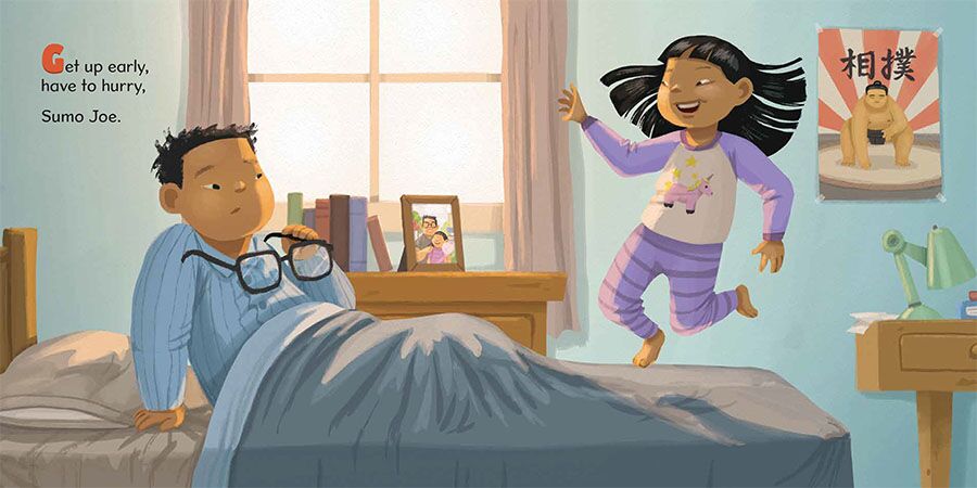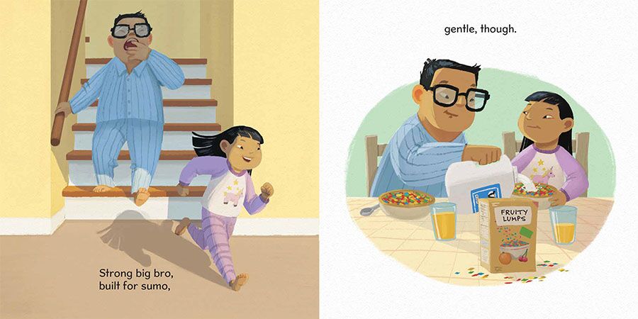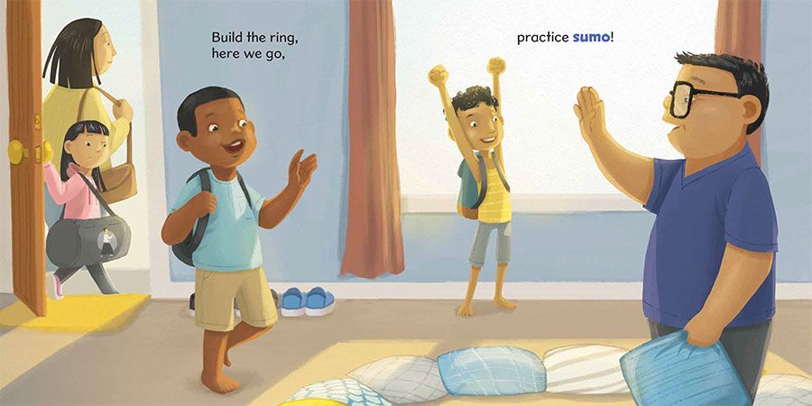 On Saturday mornings, Sumo Joe is a gentle big brother to his little sister. But on Saturday afternoons, he and his friends are sumo wrestlers! They tie on makeshift mawashi belts, practice drills like teppo, and compete in their homemade dohyo ring. They even observe sumo’s ultimate rule: no girls allowed! But when Sumo Joe’s little sister wants to join in the fun, Sumo Joe is torn between the two things he’s best at–sumo, and being a big brother.