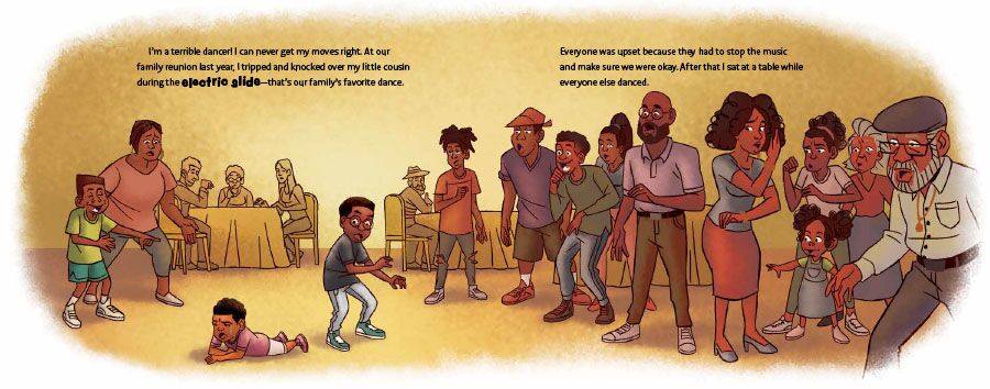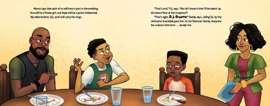 Kai’s aunt is getting married, and everyone in the Donovan family is excited about the wedding … except Kai. The highlight of every Donovan occasion is dancing the electric slide–a groovy line dance with footwork that Kai can’t quite figure out. More than anything, he wants to prove that he can boogie with the rest of his family and earn a cool nickname from his granddad. Can Kai break through his nerves and break it down on the dance floor?