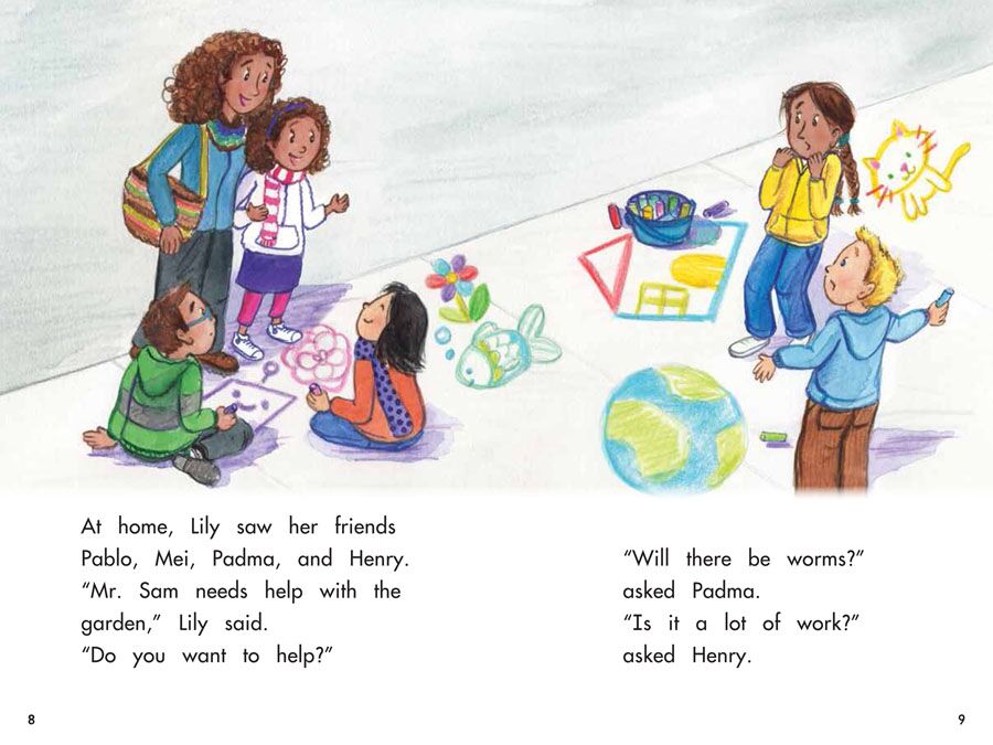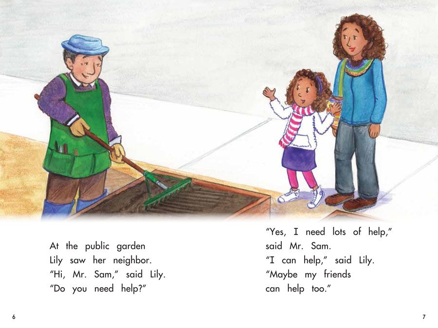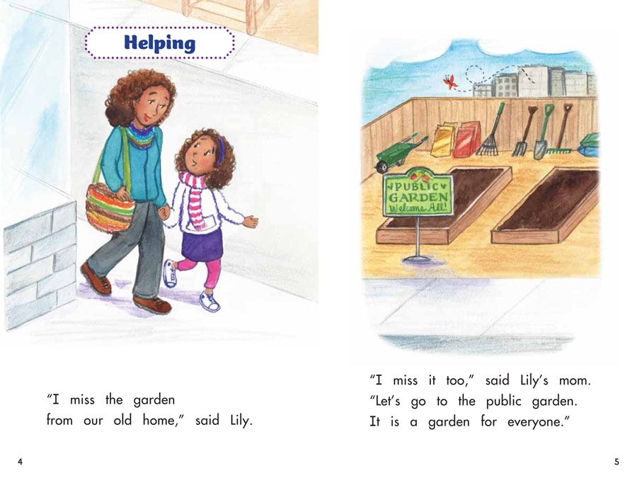 In this story, Lily still misses having a backyard with flowers and a vegetable garden. Then she remembers the public garden in the neighborhood and tries to convince her friends gardening is fun. Her friends are a little reluctant–it sounds like a lot of waiting and work. But in the end, they enjoy learning what a plant needs to grow, and that patience can sometimes yield something delicious.