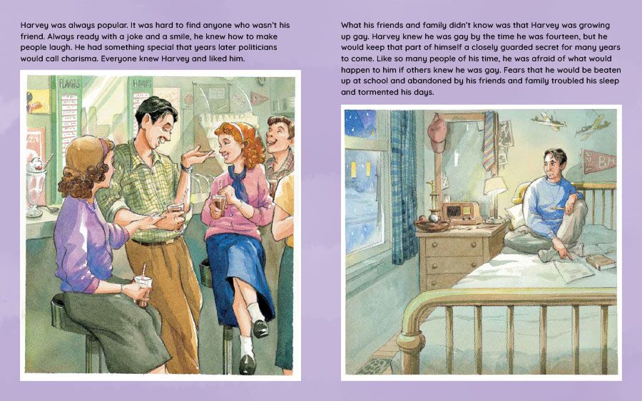One of the first picture book biographies for children about a gay leader, this is a perfect introduction to one of the most important figures in the fight for LGBTQ civil rights. Backmatter includes further details about the struggles faced by different groups mentioned in the story, other sources readers can turn to for more information about Harvey, and more books about LGBTQ+ history.