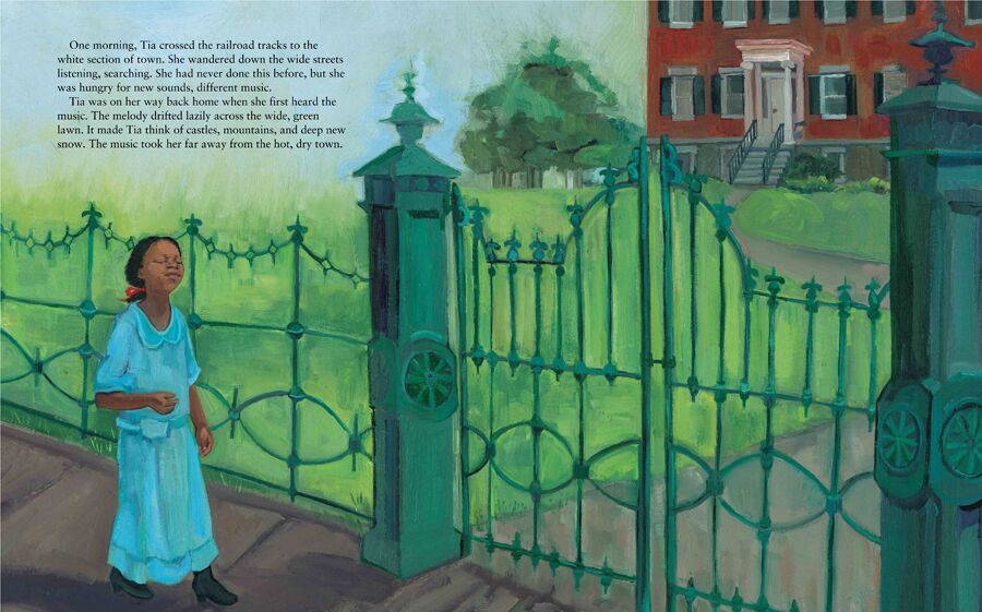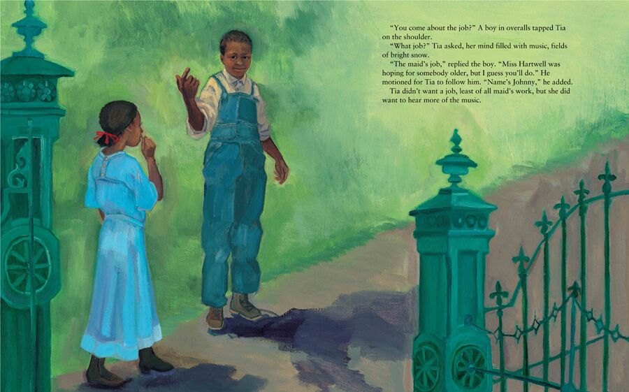 One day, Tia wanders into the white section of town. Soon she is transfixed by a wonderful melody that drifts towards her from one of the houses. Without thinking, Tia accepts a maid’s job from Miss Hartwell, the woman who lives there, just so she can hear more of the music.