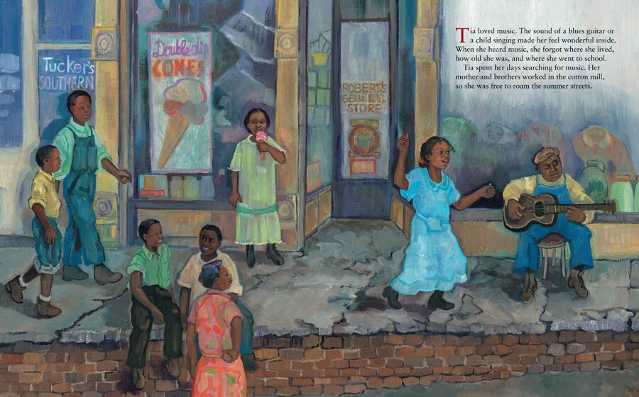 Tia loves music. She walks the summer streets searching for new sounds and different kinds of music that will transport her from the hot, dry town where she lives to imaginary places filled with castles, mountains, and deep snow.
