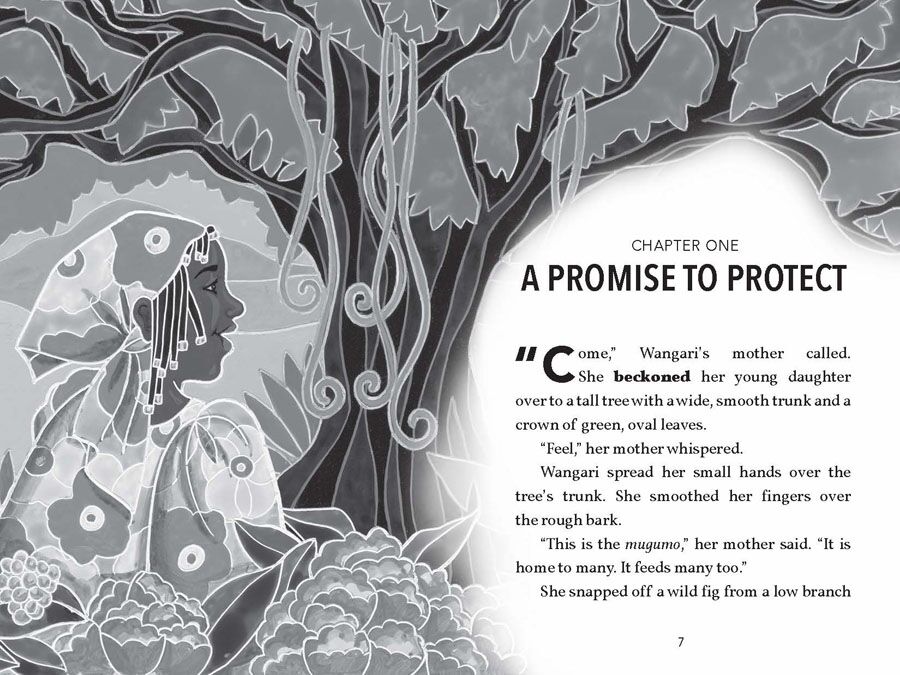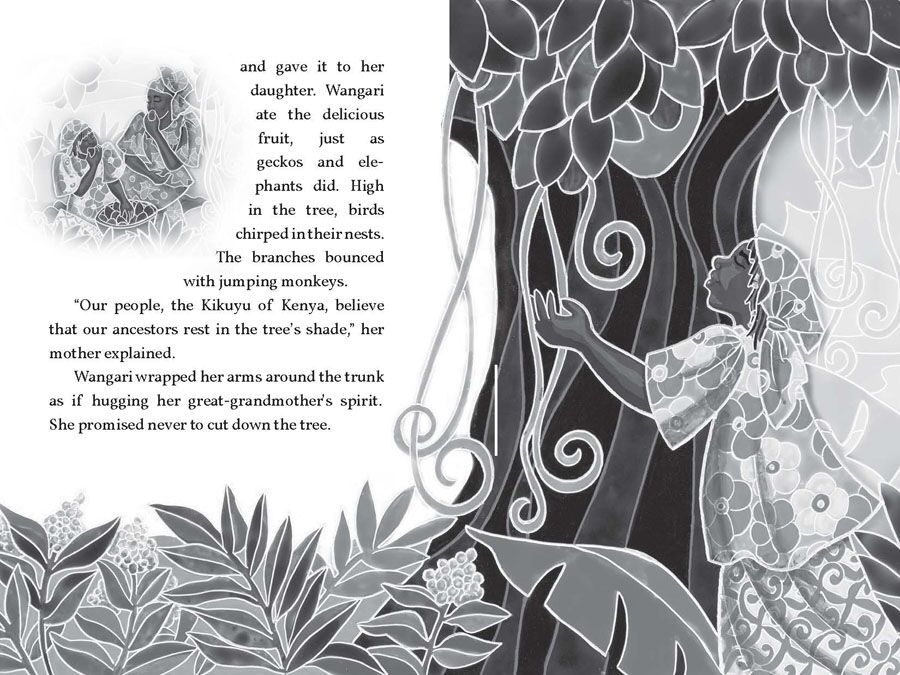 As a young girl in Kenya, Wangari was taught to respect nature. She grew up loving the land, plants, and animals that surrounded her — from the giant mugumo trees her people, the Kikuyu, revered to the tiny tadpoles that swam in the river.