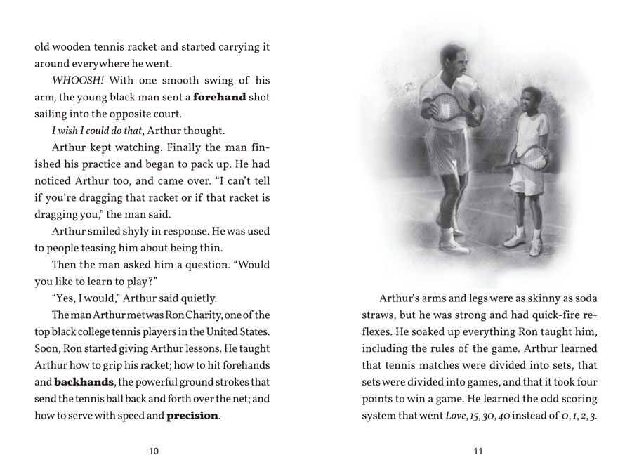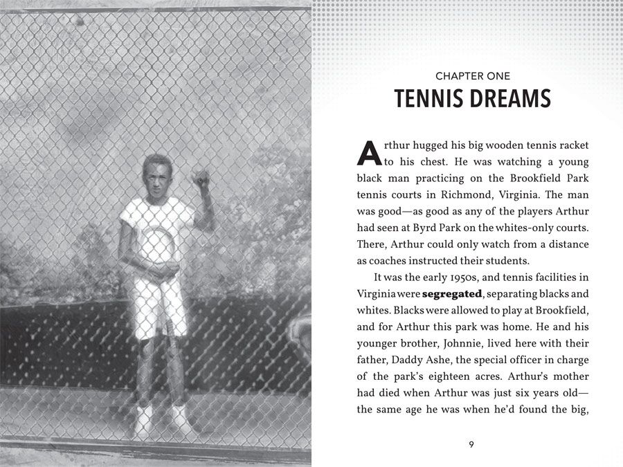 From the start, Arthur Ashe was an unlikely tennis player. As a young boy in Richmond, Virginia, in the 1940s, he was small and skinny–and barred from most tennis courts because he was black. Still, Arthur was drawn to the game and began to play wherever he could.