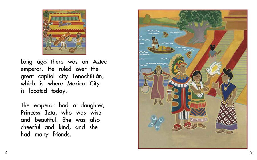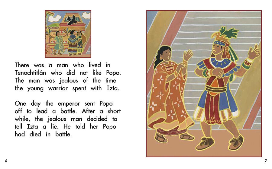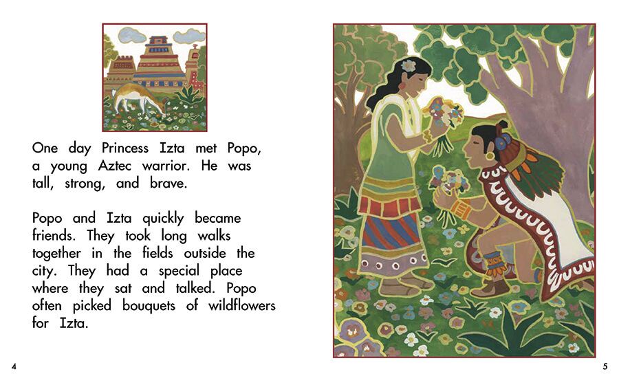 Open this book to read the Aztec legend of Izta, Popo, and the two volcanoes.