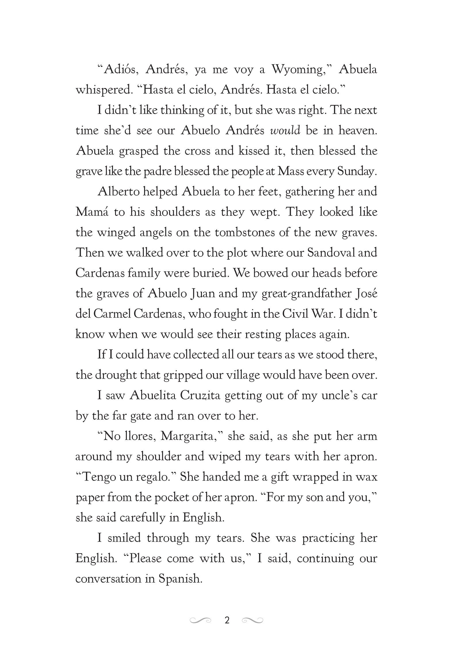 Some days, ten-year-old Margaríta Sandoval feels as if the wind might blow her away. The country has been gripped by the Great Depression, so times are hard everywhere. Then she has to leave her família in New Mexico — especially her beloved Abuelita — to move to Fort Steele, Wyoming, where her father has taken a job on the railroad.