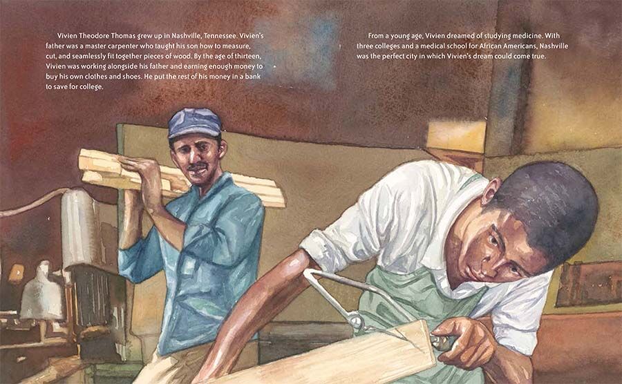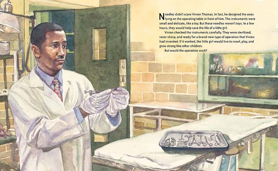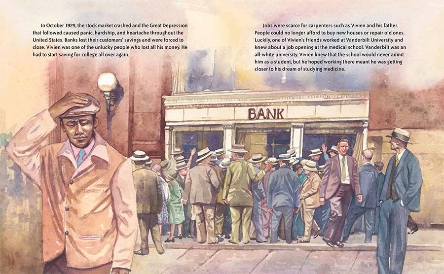 Vivien Thomas’s greatest dream was to attend college to study medicine. But after the stock market crashed in 1929, Vivien lost all his savings. Then he heard about a job opening at the Vanderbilt University medical school under the supervision of Dr. Alfred Blalock. Vivien knew that the all-white school would never admit him as a student, but he hoped working there meant he was getting closer to his dream.