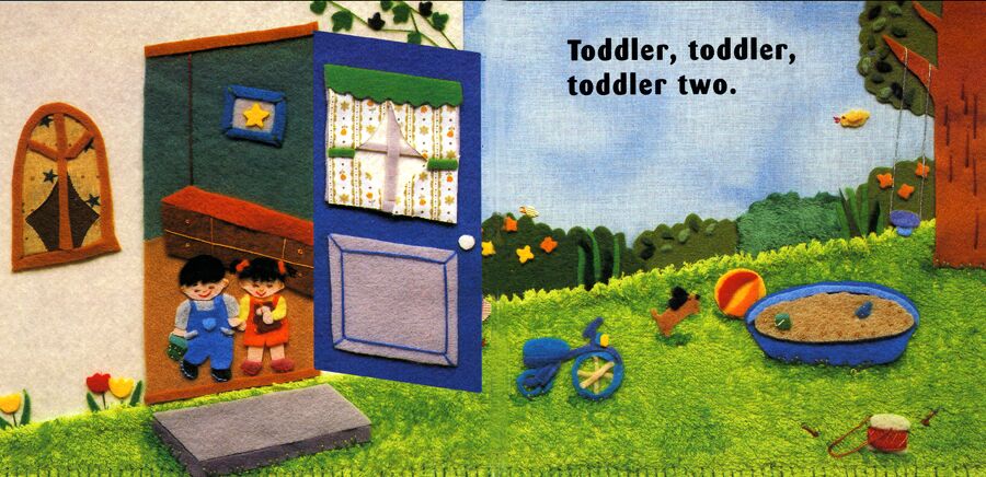 Two adventurous toddlers take an afternoon’s romp through their backyard, blowing bubbles, digging in the sandbox, playing hide-and-seek, riding on swings, and playing with other toys. As young readers follow along, they discover what comes in twos as the pictures under the flaps unfold – two hands, two feet, two eyes, two ears, two legs, two arms. Two is the number just for them!