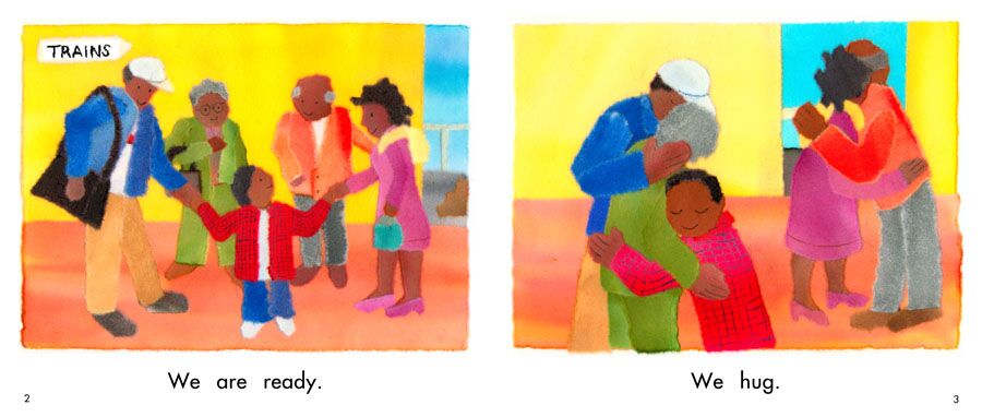 An African American boy experiences the excitement of his very first train ride with his parents.