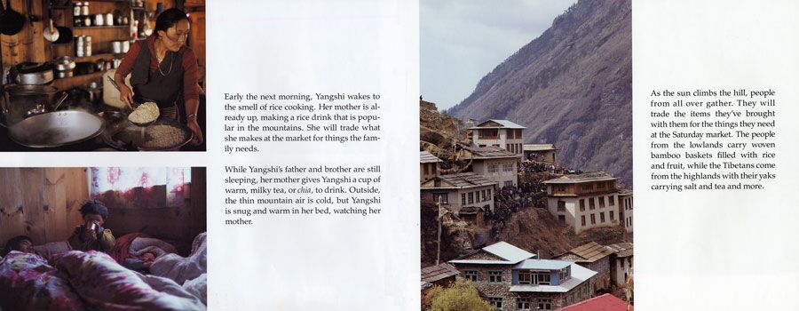 High in the Himalaya, Yangshi’s mother is making a rice drink to trade at the market. For Sherpas and Tibetans, trading is a means of sharing their crops and goods with others who live throughout the mountain chain.