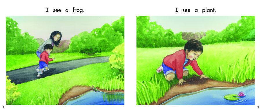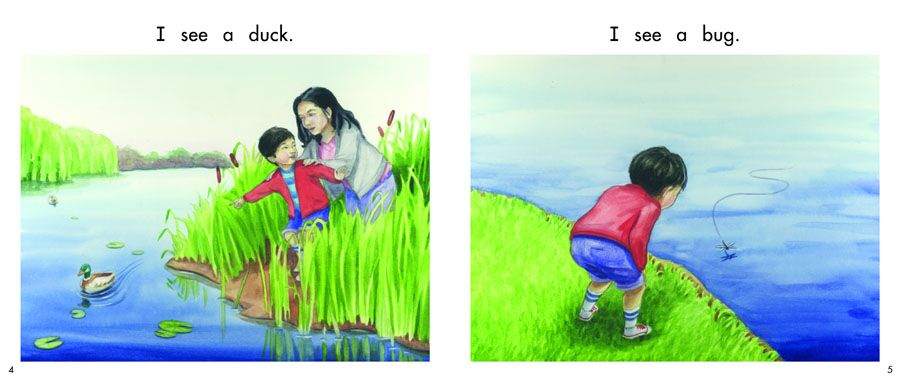 A young Asian American boy and his mother see all kinds of animals in the pond. But there’s something else the boy sees in the pond too-his own reflection!