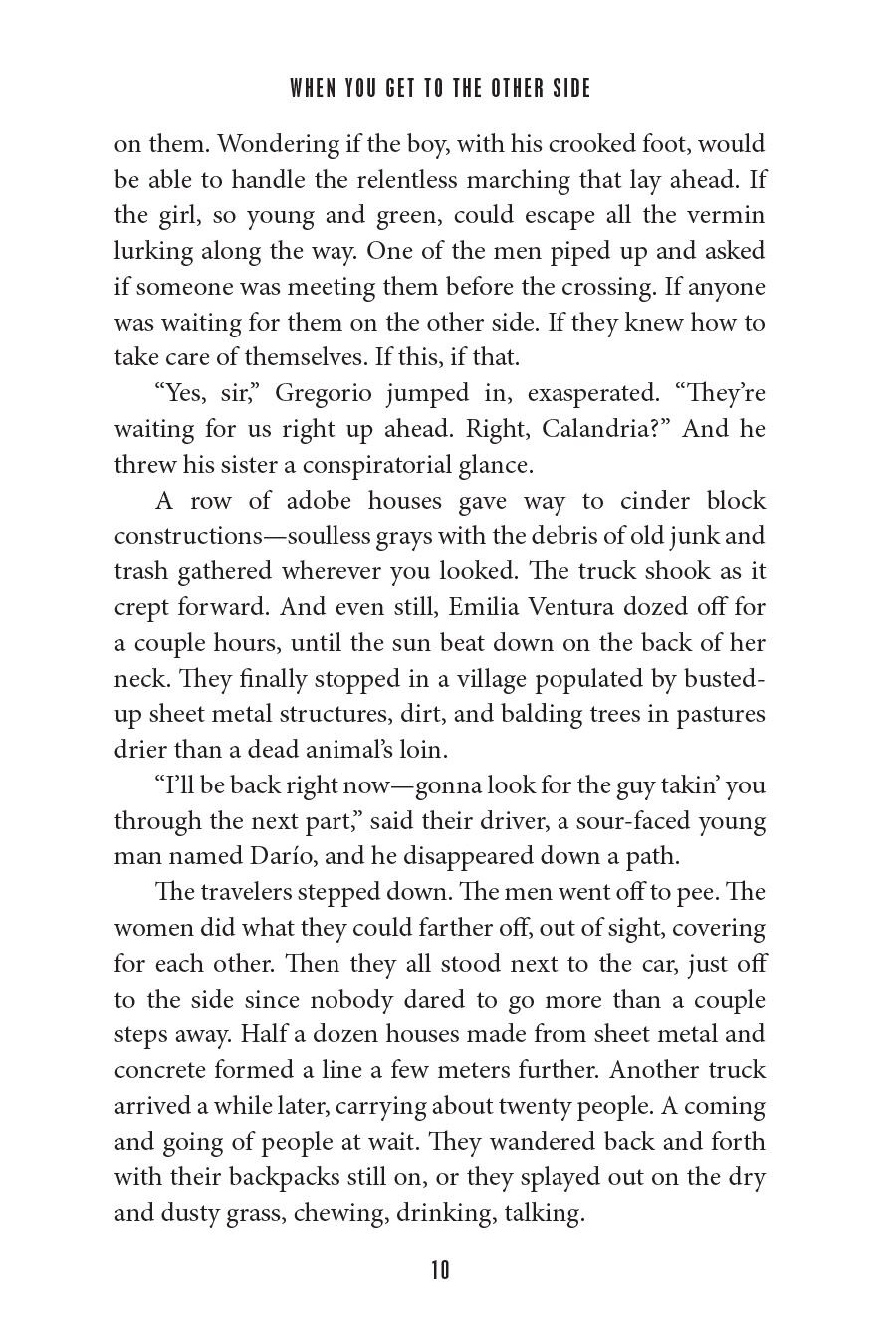 This masterful novel, first published in México, pushes beyond stereotypes to honor not only the dangers immigrants withstand, but also the far-reaching knowledge and roots they carry. When You Get to the Other Side is a powerful, poignant look at the nature of borders, what it means to cross them, and the changes people undergo when they travel between two worlds.