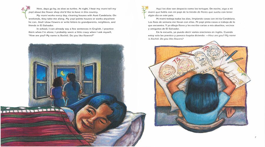 Xochitl mourns a lovely garden and her family’s small flower business, all left behind. Selling flowers on the street soon provides more than income for the Flores family: they begin to make friends with local storeowners and neighbors. But it is not until the family decides to start a nursery in its backyard that Xochitl begins to learn the true value of community in their adopted country.