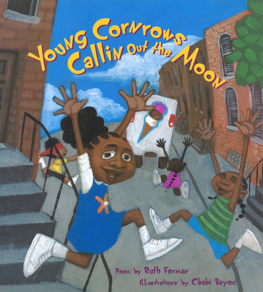 Ruth Forman, whose work has been honored by the American Library Association, offers a poetic testament to childhood, language, and play. Cbabi Bayoc’s richly hued paintings brings to life the streets of South Philadelphia to vivid life. Young Cornrows Callin Out the Moon is a celebration of city summer memories, and of African American culture and community.